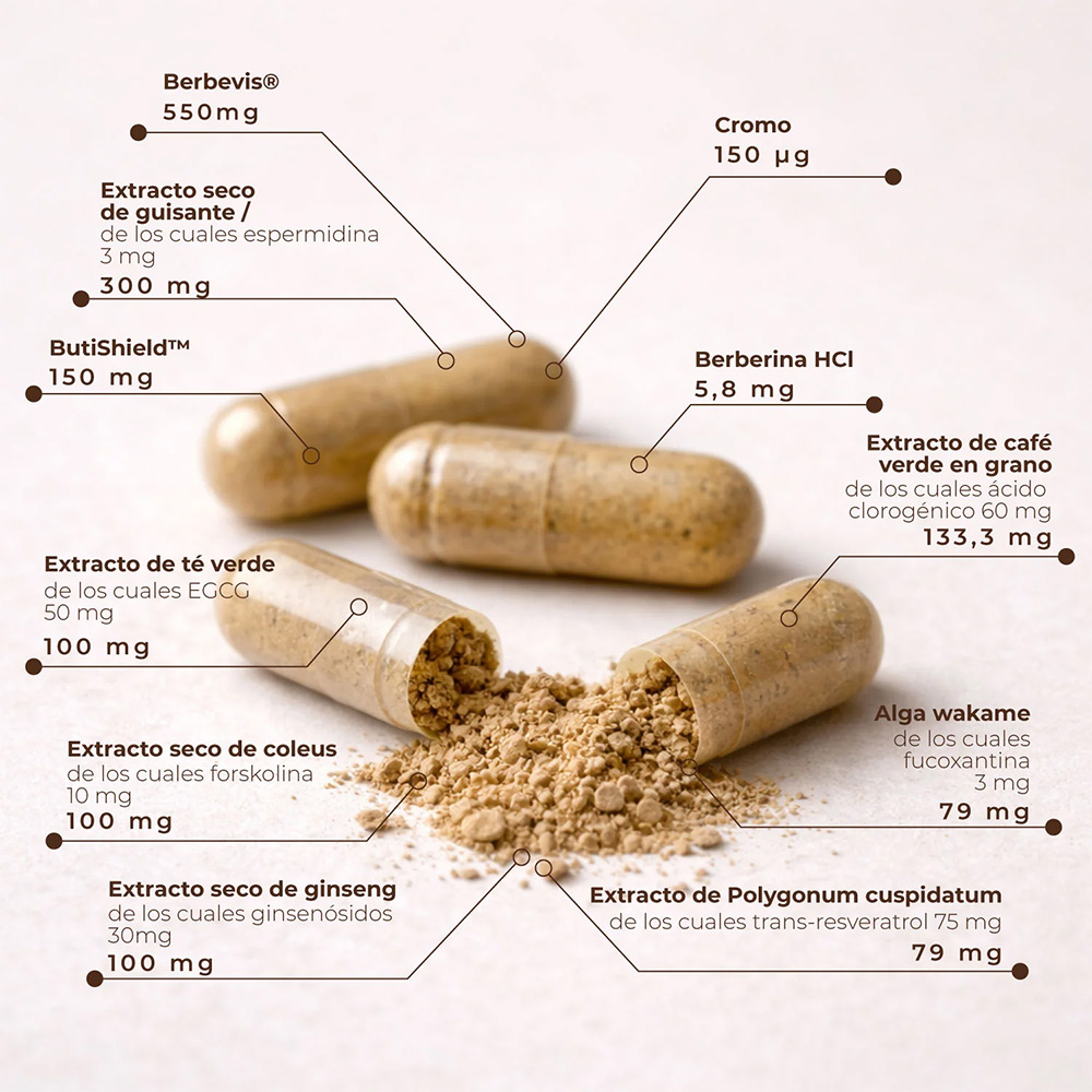Tienes ante ti un producto súper completo, un tratamiento 360 para abordar el control de peso. No solo actúa regulando ese peso, si no que favorece la saciedad, mejora la microbiota, mejora el metabolismo de hidratos de carbono, reduce picos de glucosa… es que no te miento cuanto te digo, que esto es un antes y un después en el control de peso.